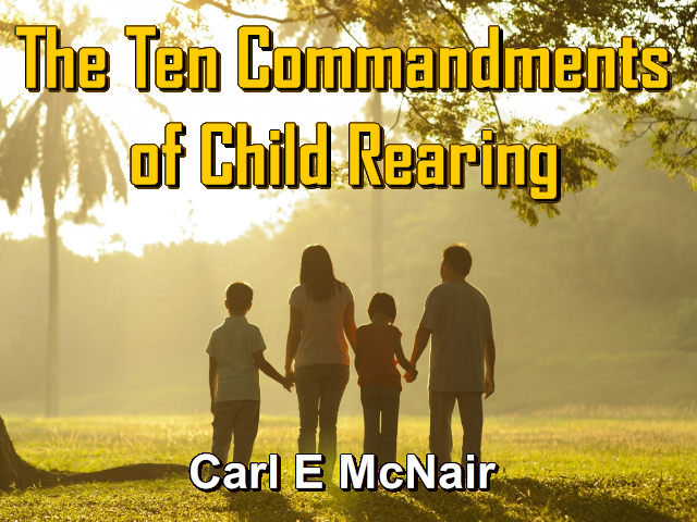 Some time ago I think I gave you a Sermon with some of the background on the subject of child rearing and I don't want to repeat myself, although it is quite likely. For some reason we do that. However if I do, it will be incidental to the main subject. Today I want to speak to you concerning the Ten Commandments of Child Rearing. Now I'm not Moses, although I may have white hair, not as old as Moses was when he began the track out of Egypt with the children of Israel.