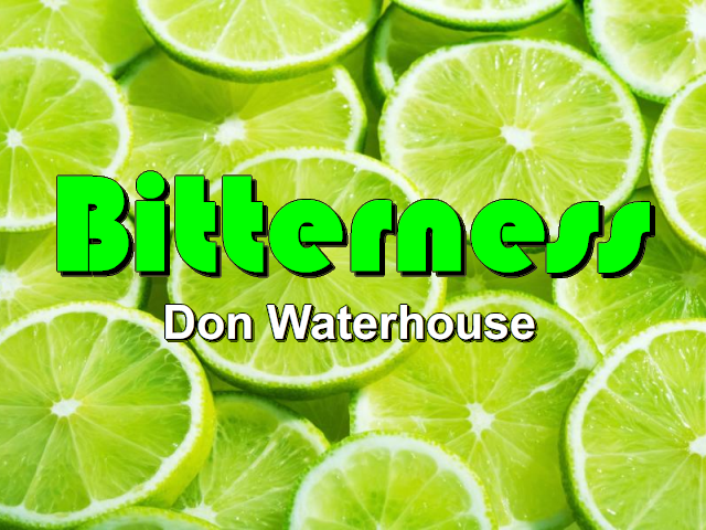Now, the reason I selected this particular word, it's not only because I needed something to talk about but because it is something that is not only plaguing the world around us—the world that we have come out of which, in many cases, as we know is an extremely bitter society, especially if people have gone through maybe unsuccessful marriage or there's been an untimely death in the family or there's been severe disease or there's been a financial setback, you know, or something like that. People can become extremely bitter, not only with other people, they become bitter with their own lives. To the point that they are turned off with society, turned off with wanting to live, turned off with wanting to accomplish anything.