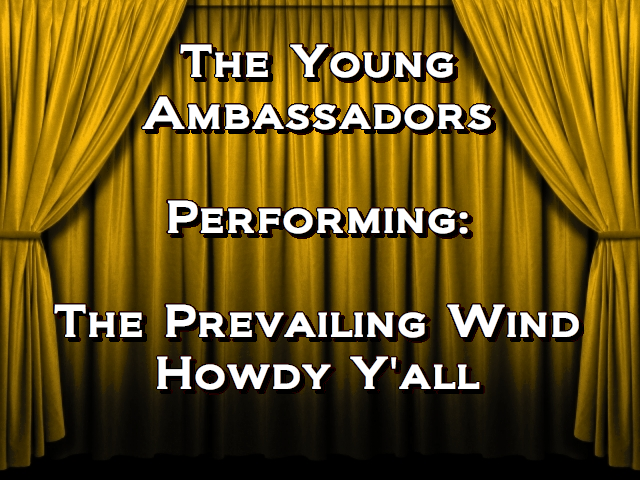 Title: Festival of Music 1 Category: Horizons Cassette 1: Side B Song Title: The Prevailing Wind (Howdy Y'all) Performed by: The Young Ambassadors