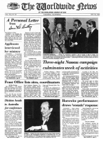 Applicants interviewed for ministry - Three-night Nassau campaign culminates week of activities - Feast Office lists sites, coordinators - Division heads in Australia for conference - Horowitz performance draws 'ecstatic' response - Tour of jungle longhouse life given to Australian ministers - Ambassador lists honor students - Member saw Dayaks on '56 trip to Borneo - Minister explains sin on TV show - Program gains young people's interest - Man escapes major injury - Minister visits Cameroon - Head of German Work speaks in seven cities - Local church news wrap-up - The Official Grapevine.