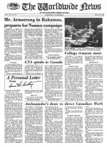 Mr. Armstrong in Bahamas, prepares for Nassau campaign - GTA speaks in Canada - College trustees meet - Ambassador's dean direct Canadian Work - Faculty jobs offered - War orphan adopted by family - Puzzling name changes at Petti/yjohn wedding - French director notes skepticism at campaigns - Grow your own garden in the city - Novice agriculturist has her growing pains - Wife sees through darkness; it's easy to forget she's blind - Work's Educational Service eyes for more than 1,500 - Stanley Rader discusses his role in Work - Local church news wrap-up - The Official Grapevine.