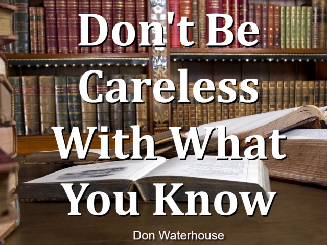 Beginning to analyze your life and analyze my life, I think we can all say that our problems, or our basic problem, is not a lack of knowing what's right. We know what's right. We know what to do. We know right from wrong. We know all the right that we ever need to know to make it into the family of God. We have much more knowledge than we would ever need to know to qualify for that family. You don't have to have a great deal of knowledge, but you do have to have the character to apply what you know. Our problem is not a lack of knowing what's right, but it's carelessness. That is, not putting forth the energy, exercising the energy to apply what we already know.