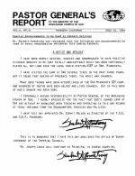 July 30, 1984 - Pastor General's ReportJuly 30, 1984 - Pastor General's Report